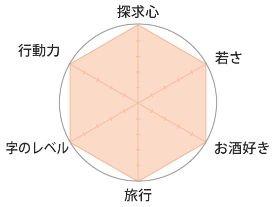 意外とアウトドアです。夢は日本一周。1人で旅館などにも泊まってみたいです。